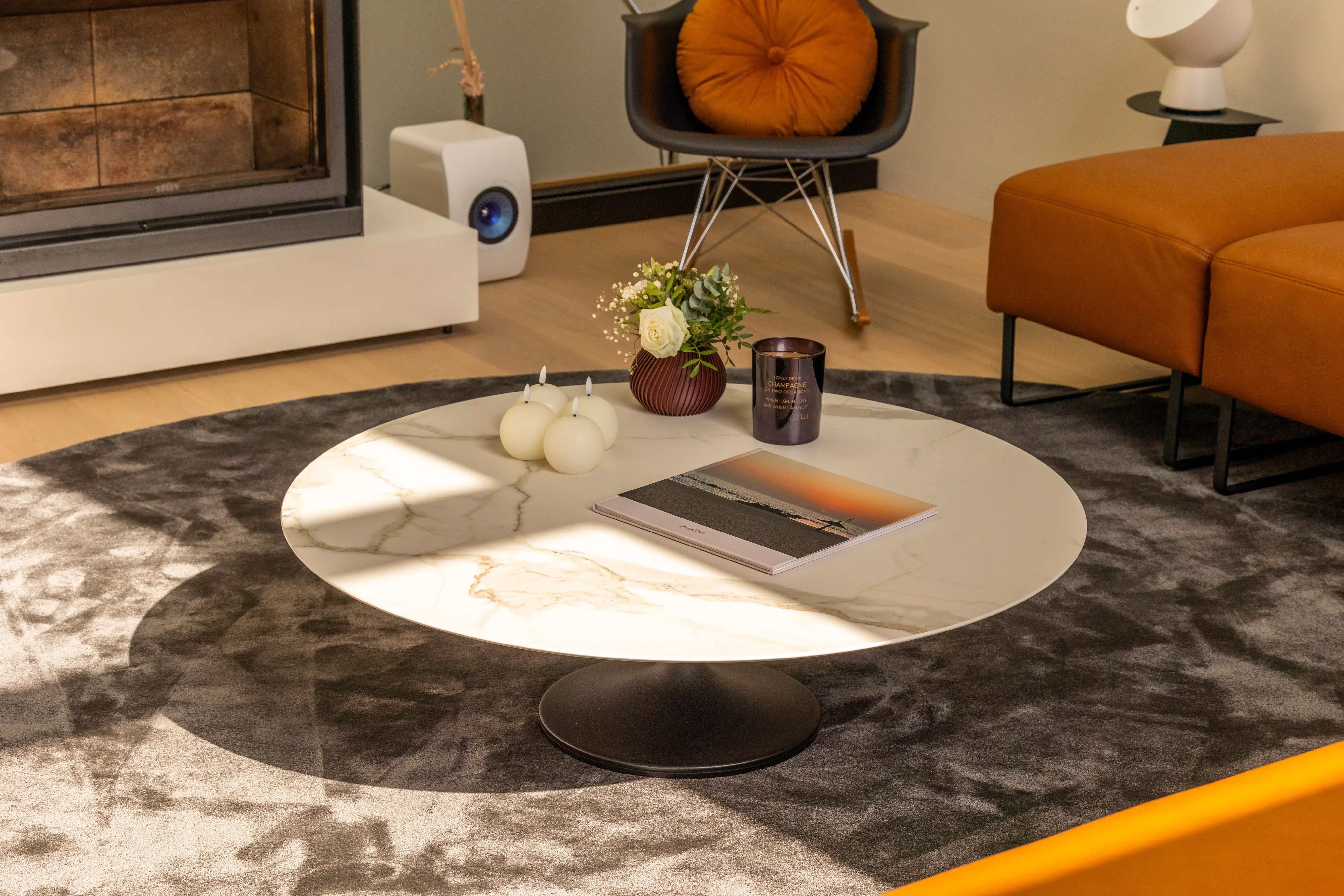 Maison à Nobressart aménagée par HD Home : deux salons cohérents, mobilier design et décoration sur mesure en Belgique et Luxembourg.